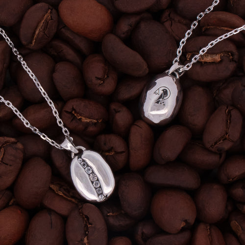 Kona Coffee Bean Sterling Silver with White Topaz Necklace